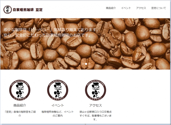 所沢市狭山ヶ丘にある、自家焙煎珈琲豆販売をされている「豆定」さんです。
