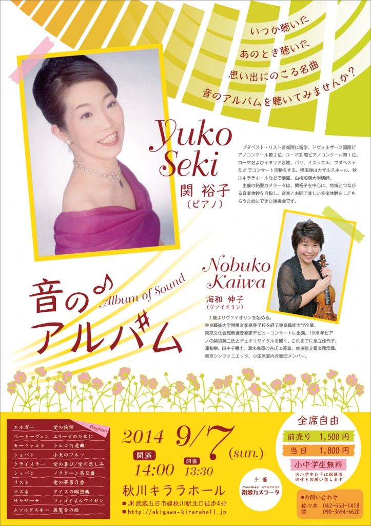 先日当社にて作成させていただきました、関裕子様ピアノ演奏会のチラシです。